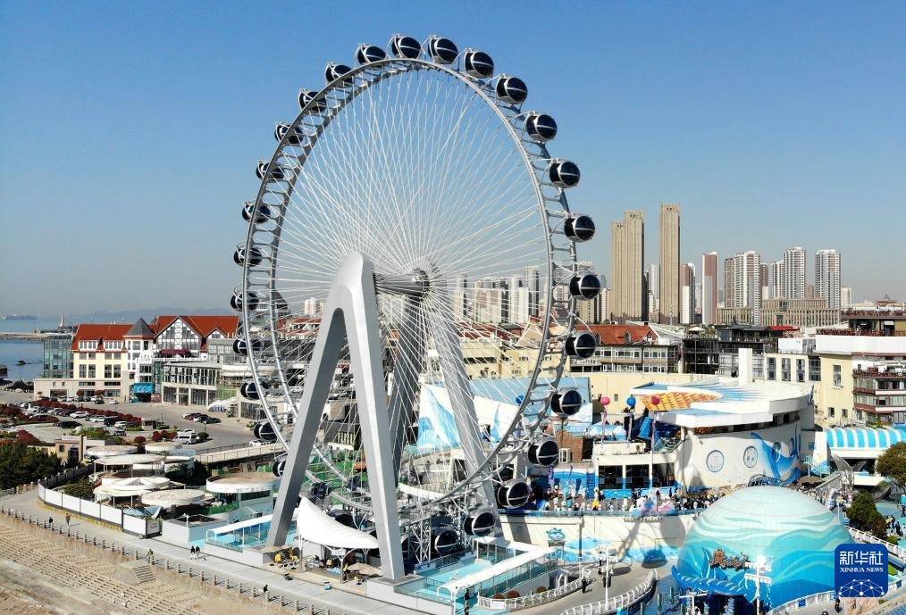 当日,坐落于青岛极地海洋公园的极地之光·青岛海上摩天轮正式启用,为青岛海岸线再添一处文旅地标。该摩天轮高66米,安装有30个新一代全景透明轿厢,每个轿厢可乘坐8到10人。