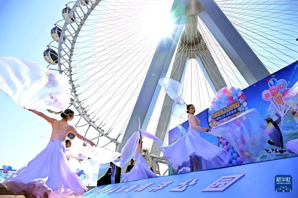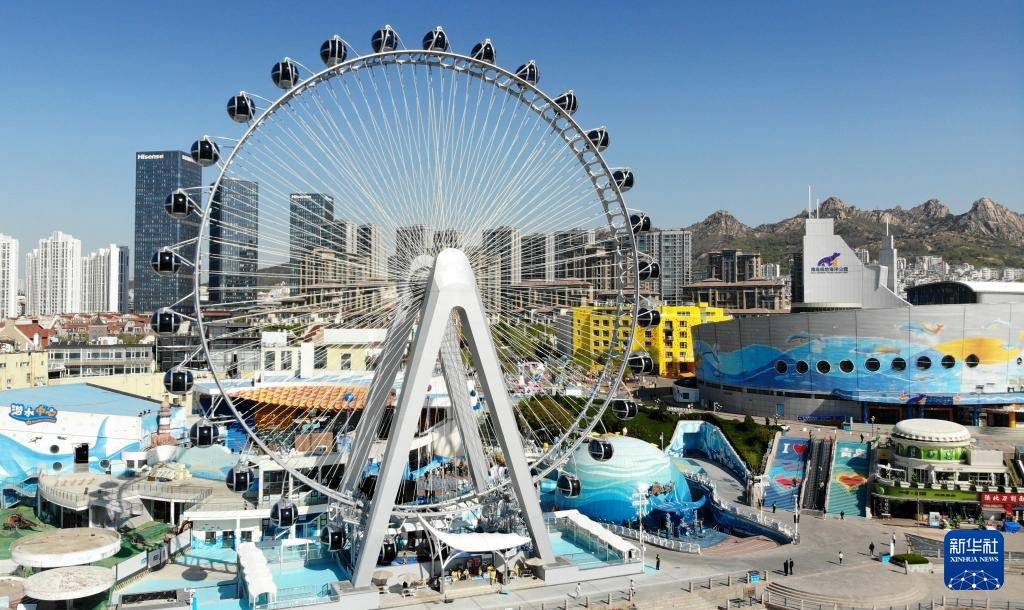 这是4月25日拍摄的极地之光·青岛海上摩天轮(无人机照片)。